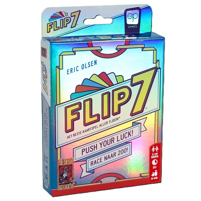 Flip 7 kaartspel van uitgever 999 Games. Elke kaart is punten waard in dit spannende kaartspel, maar pas op: draai je twee keer dezelfde kaart om, dan verlies je alles!In dit zenuwslopende kaartspel probeer je zoveel mogelijk punten te verzamelen door één voor één kaarten om te draaien. Hoe hoger de waarde, hoe vaker die kaart in het spel zit, dus je kunt al snel aan veel punten komen, simpel toch! Maar pas op: niets is wat het lijkt, want draai je twee keer dezelfde kaart om, dan verlies je alles! Speel je op safe en stop je op tijd, of riskeer je al je punten voor één extra kaart? Stel je geluk op de proef en daag al je vrienden uit in dit verslavende kaartspel!
