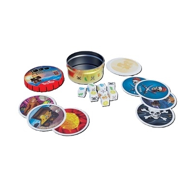 1000 Bommen en Granaten Tinytins reisspel van 999 Games. Bekend dobbelspel in een schatkistje! Neem 1000 Bommen & Granaten overal mee naartoe en bewijs tegenover iedereen dat jij de beste piraat op zee bent! Hoe tof zou het zijn als je jouw favoriete spelletje overal mee naartoe kon nemen? Met deze handige Tiny Tin kan dat gewoon! Het grote plezier van het spel, maar dan in miniformaat! Deze compacte variant van het spannende dobbelspel is een grote schat in een klein kistje! Daarom nemen echte schatzoekers altijd hun favoriete Tiny Tin mee op reis!