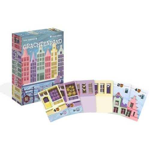Grachtenpand is een licht kaartdraftingspel voor 2-4 spelers waarin je een idyllische set grachtenpanden bouwt. Je bouwt de huizen met behulp van ‘fundamenten’, ‘verdiepingen’ en ‘daken’.
